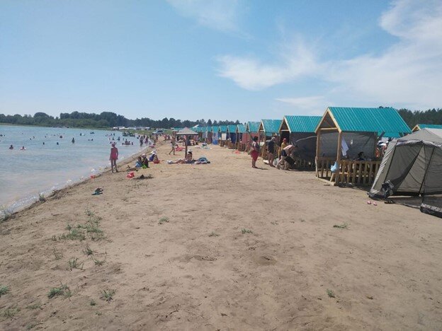 На побережье обустроен песчаный пляж, установлено кабинки для переодевания, беседки и солнцезащитные сооружения. Здесь имеется волейбольная площадка и мангальная зона, а также гостевой домик.